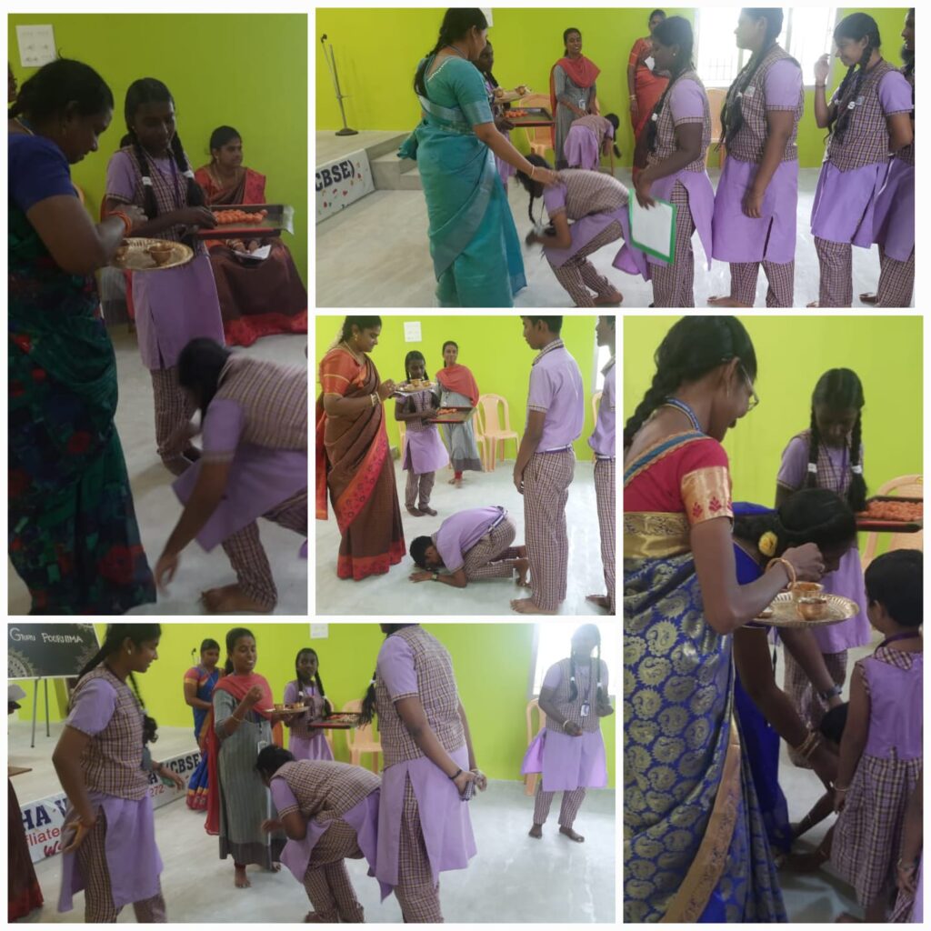 A Speech about Guru Poornima in Tamil and English was given by Sankavi of class VI and Muthulakshmi of class VIII.