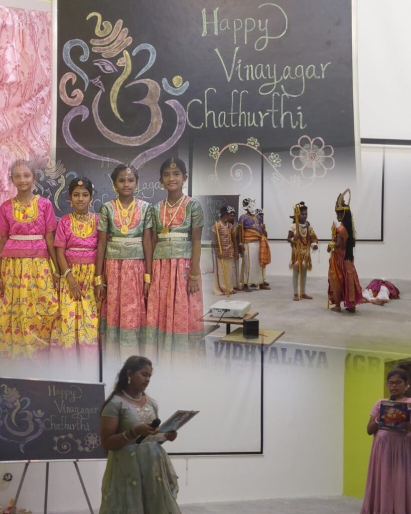 Our students of class II ,III and IV performed birth of lord ganesha through a skit. The story was narrated by Ashika of class VII and Muthulakhmi of class VIII.